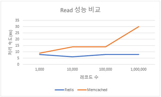 해당 표에서 볼 수 있듯이 Memcached의 경우 Write 연산에 있어서, Redis 보다 좋은 성능을 보임을 알 수 있습니다. 하지만, Read 연산에 있어서는 Redis가 더 좋은 성능을 보입니다.